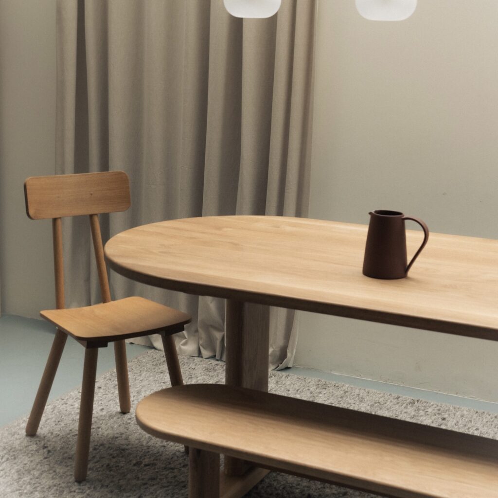 A versatile oak chair, comfortable and hardworking. The familiar aesthetic and craft-based construction of a traditional alpine chair has been refined, resulting in a design that is truly contemporary craft.
