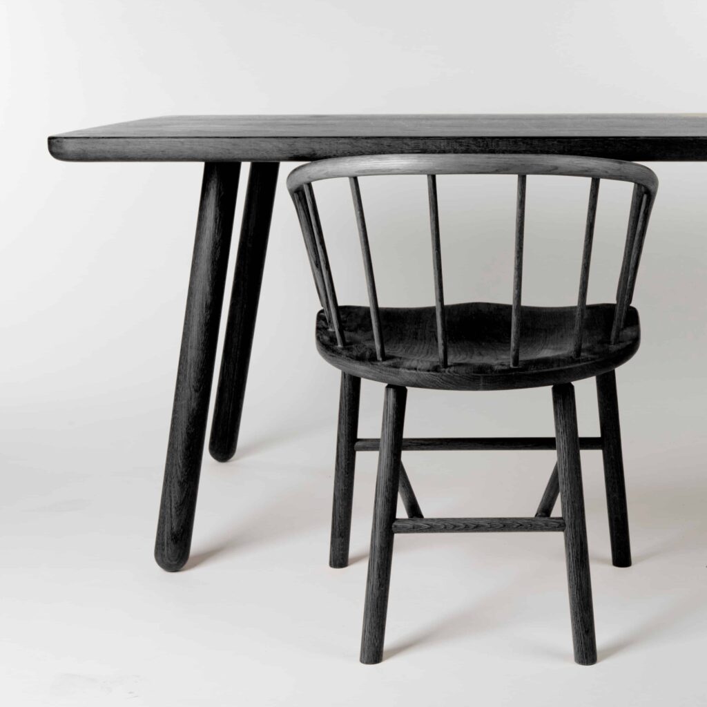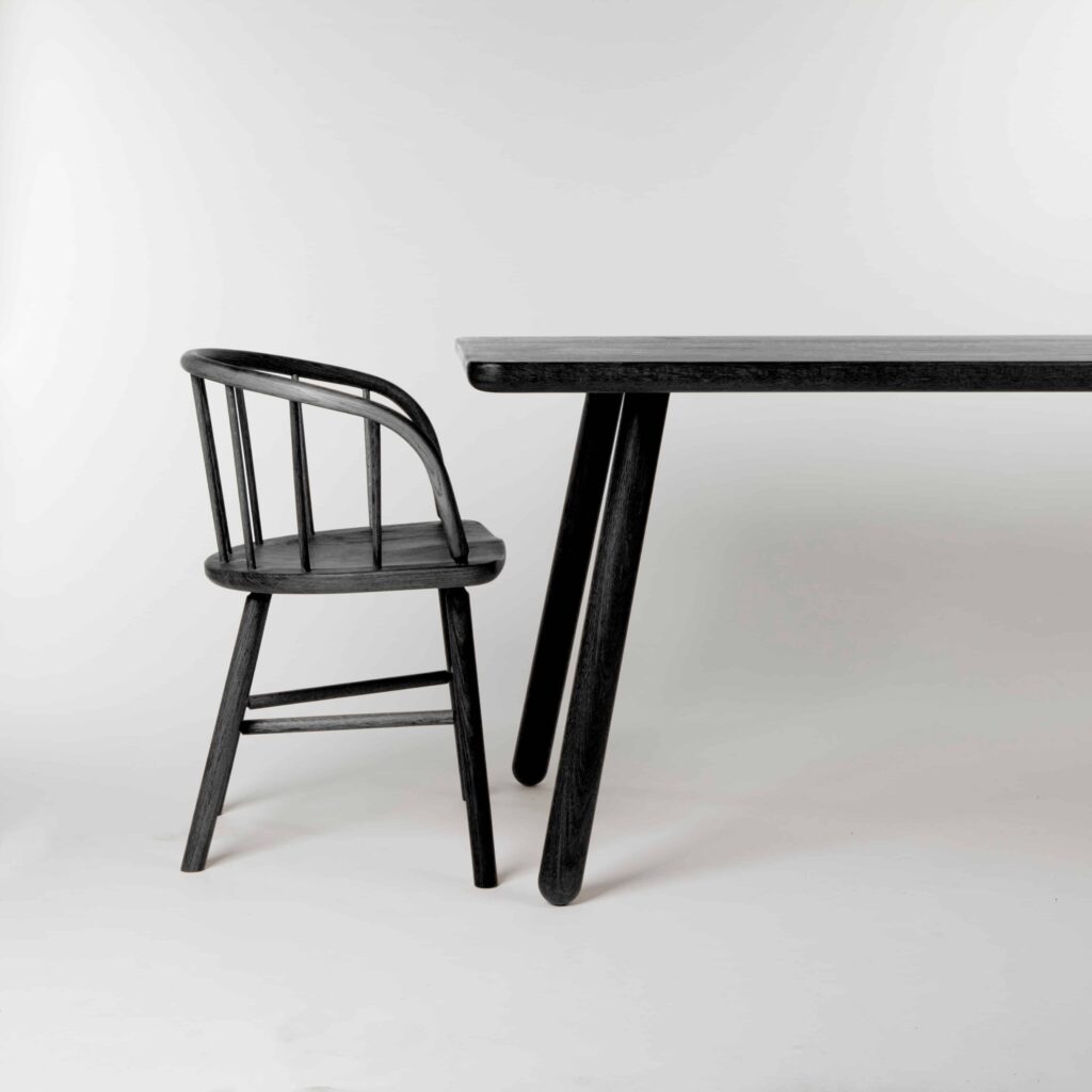 The black Hardy chair is a modern carver and a classic in the making, its single steam-bent back a true work of craftsmanship.