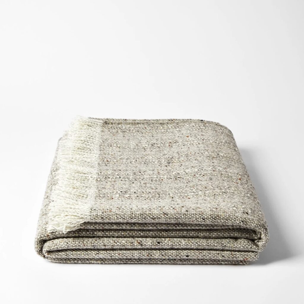 First woven in the 1980s, the Mourne Classic blanket showcases the enduring appeal of traditional craftsmanship, brought to life in a lightweight tweed fabric. Inspired by the rugged beauty of the Mourne landscape, this iconic design features a palette of soft blues, greens, apricots, and golds—reminiscent of the natural hues found in bawneen wool, historically used in fishermen’s and labourers’ waistcoats.