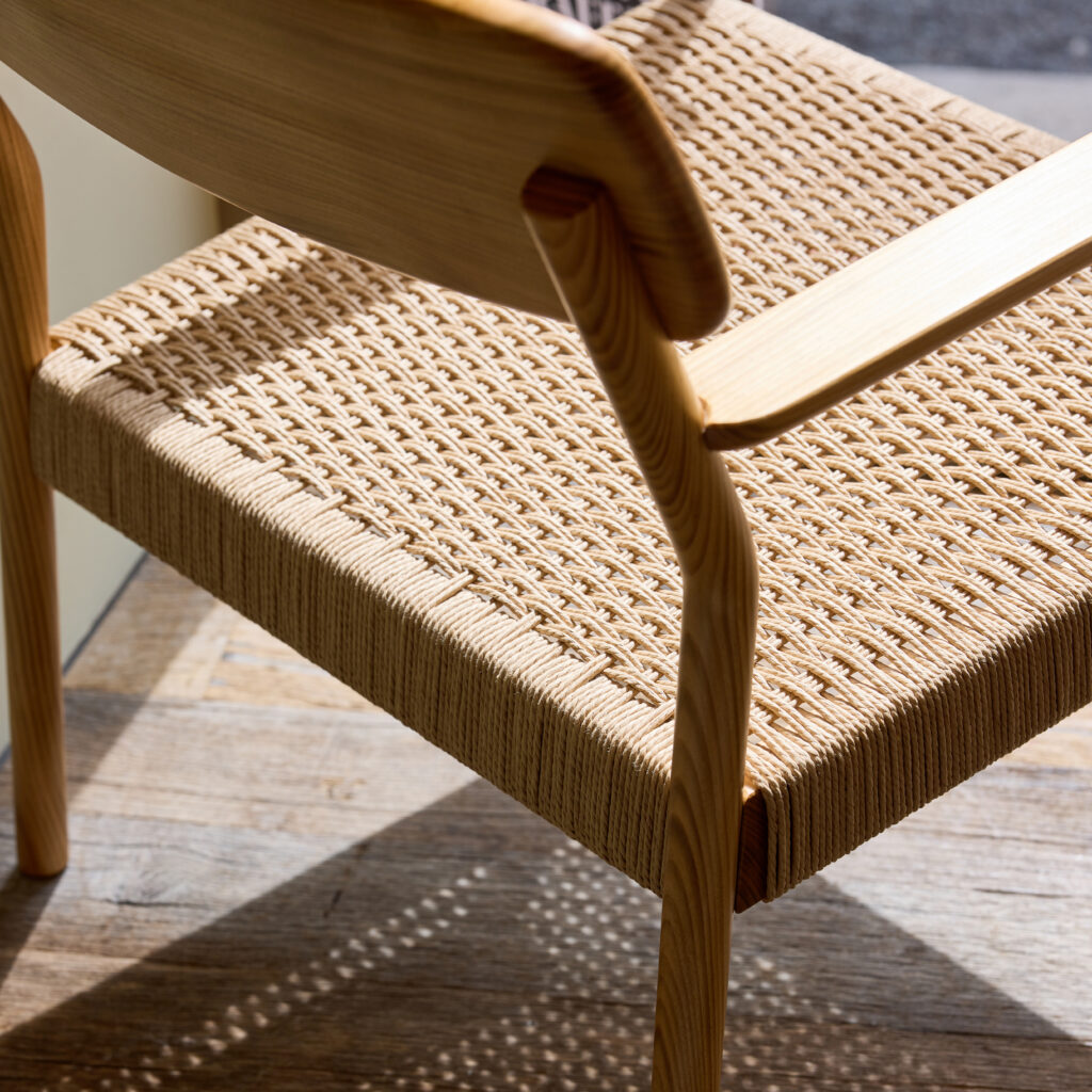 Vale is crafted from Cherry wood, with a handwoven seat using Danish Cord.